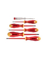 The screwdrivers features a hanging hole for easy storage or inserting lever. The handle is 30% slimmer and extra long. The ERGONIC® handle is the first handle to adapt to the users hand. The handle also includes an anti-roll feature keeping the screwdriver in place. The handle caps are marked with screw symbols, making it fast and easy to find the right screwdriver for the job.