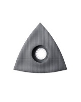 Standardausführung zum Schleifen mit Staubabsaugung. Kunststoffträgerplatte zur Vermeidung von Beschädigungen und Abdrücken am Werkstück. Dreieckige Form, gelochte Ausführung, Klettverschluss.Schleifplatte, flach Fein-Nummer: 63806142220S