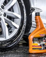 Felgenreinigungsmittel Moje Auto WHEELS SUPER SILNY ist ein saures Reinigungsmittel zum Reinigen und Waschen von Autofelgen, das besonders hartnäckige Verschmutzungen entfernt, Verfärbungen verhindert und beschädigtes Aluminium regeneriert. es entfernt effektiv Bremsbelagablagerungen und anderen Straßenschmutz. Es eignet sich zur Reinigung von Alu- und Stahlfelgen. Es verhindert Korrosion, verleiht Glanz und stellt gereinigten Oberflächen den ursprünglichen Glanz wieder her. Verhindert Verfärbungen durch Ablagerungen von Bremsbelägen. Reinigt und regeneriert Aluminium. Sie suchen ein Produkt zur Reinigung von Stahl- und Aluminiumfelgen mit außergewöhnlichen Reinigungseigenschaften? Wetten Sie auf Moje Auto Felgenreiniger Superstarkes Mittel zur Reinigung extrem hartnäckiger Verschmutzungen! Dies ist ein Produkt, das Aluminiumfelgenoberflächen reinigt und regeneriert und selbst starken Schmutz durch Bremsstaub oder Teer entfernt! Stellen Sie den Glanz sauberer und gepflegter Felgen wieder her, um eine ordnungsgemäße Belüftung der Bremssystemkomponenten sicherzustellen.