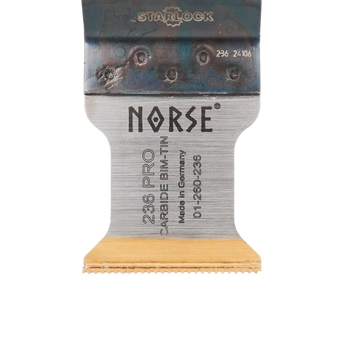 NORSE Starlock are multicutter blades of extra good quality and are produced in Germany. Blade no. 236 TiN-coated carbide plunge-cut saw blade with extremely good resistance to wear. Lasts 100% longer than uncoated carbide saw blades. Lasts 30 times longer than HSS saw blades.