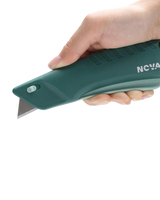 The self-retracting mechanism of box cutter retracts the blade automatically when user releases the trigger after cutting. Besides, safety box cutter has a lock position and it can be safely put in pocket.
