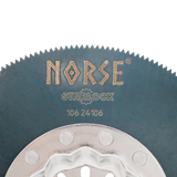 NORSE Starlock are multicutter blades of extra good quality and are produced in Germany. Blade no.106 is a solid HSS saw blade with metal teeth for sheet metal up to approx. 1 mm. Also for plastics, fibreglass-reinforced plastic, wood, putty and copper/copper alloys. Outstanding cutting speed. Clean, thin cutting line.