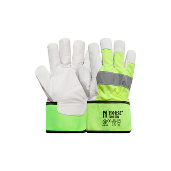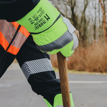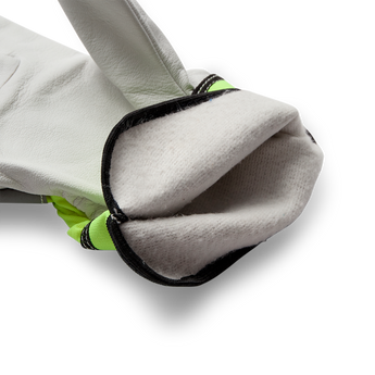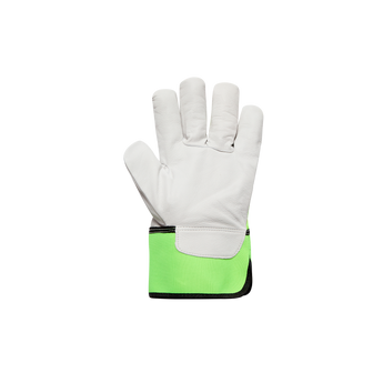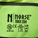 Torch Zero is a heavy-duty work glove with a palm made of soft goatskin. The back of the hand consists of a yellow, fluorescent fabric upper hand in polyester with reflective knuckle reinforcement.