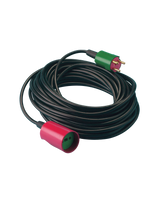Description: Cable set with dk impact resistant plug with earth and dk impact resistant extension cable with earth. With 10, 15 or 25 metres of neoprene rubber cable 3G1.5mm² H07RN-F. 230V 16A 3680W. IP44.