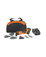 Powerful 18-accessory battery multitool for sawing and grinding. Always on the go with everything at your fingertips in the convenient nylon bag, including an 18 V 4 Ah battery and charger.