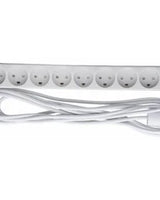 Stikdåse, AC 230 V, input: Type K, output-stikforbindelser: 8 (8 x Type K), 5 m ledning, Danmark, hvid