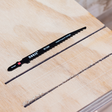 Jigsaw Reversed gives a neater cut on the surface, unlike ordinary jigsaw blades. Better quality and more precise construction. A great standard blade that you should always have in your collection. The blade shank with a cross tenon on both sides (T) is the most common and therefore fits the most common jigsaws on the market.